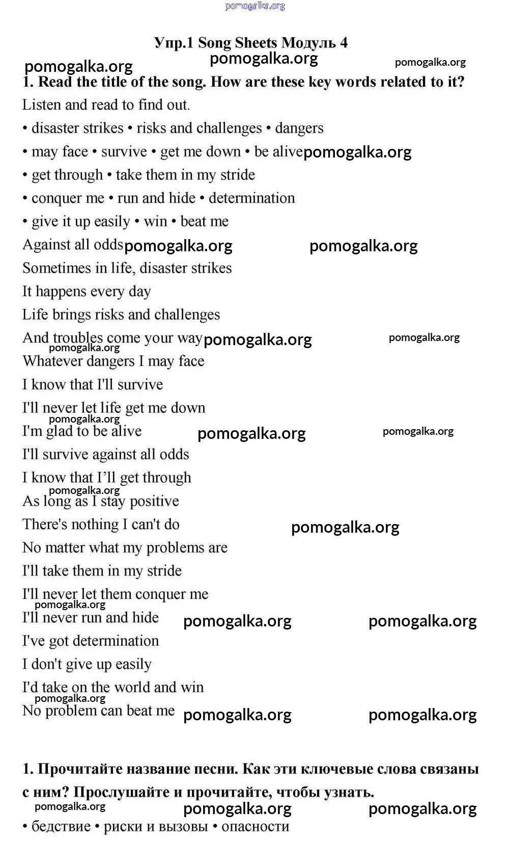 Готовые ответы - Английский язык 11 класс Эванс Spotlight - module 4 song sheets 1