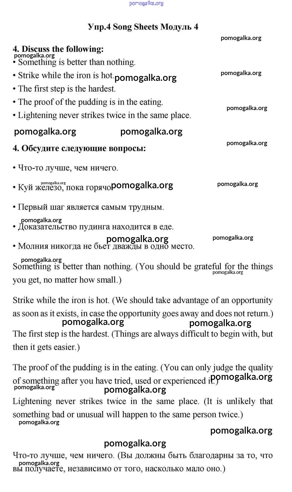 Готовые ответы - Английский язык 11 класс Эванс Spotlight - module 4 song sheets 4