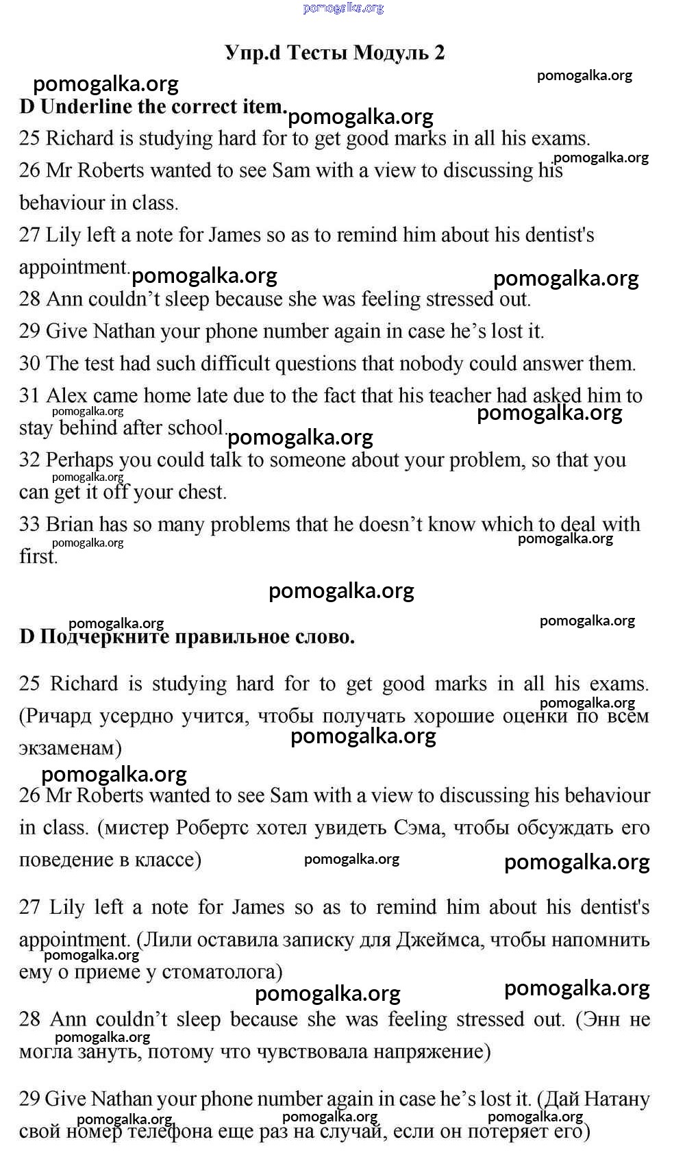 Готовые ответы - Английский язык 11 класс Эванс Spotlight - тесты module 2 D