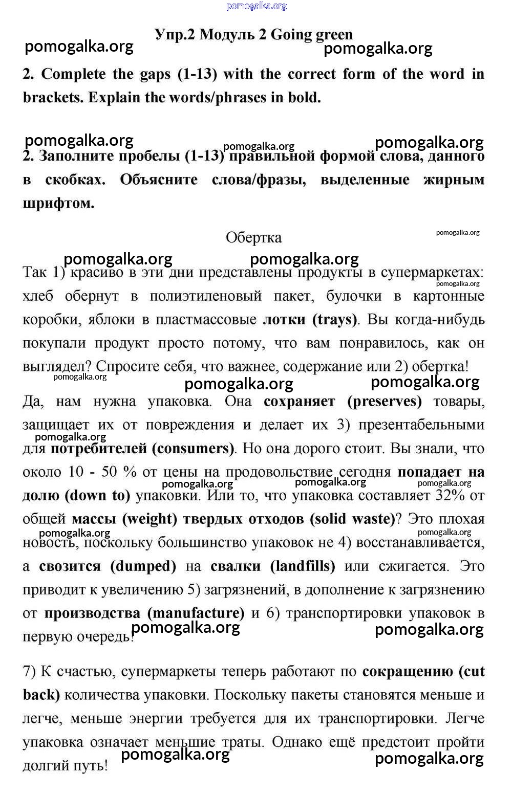 Готовые ответы - Английский язык 11 класс Эванс Spotlight - going green module 2 2