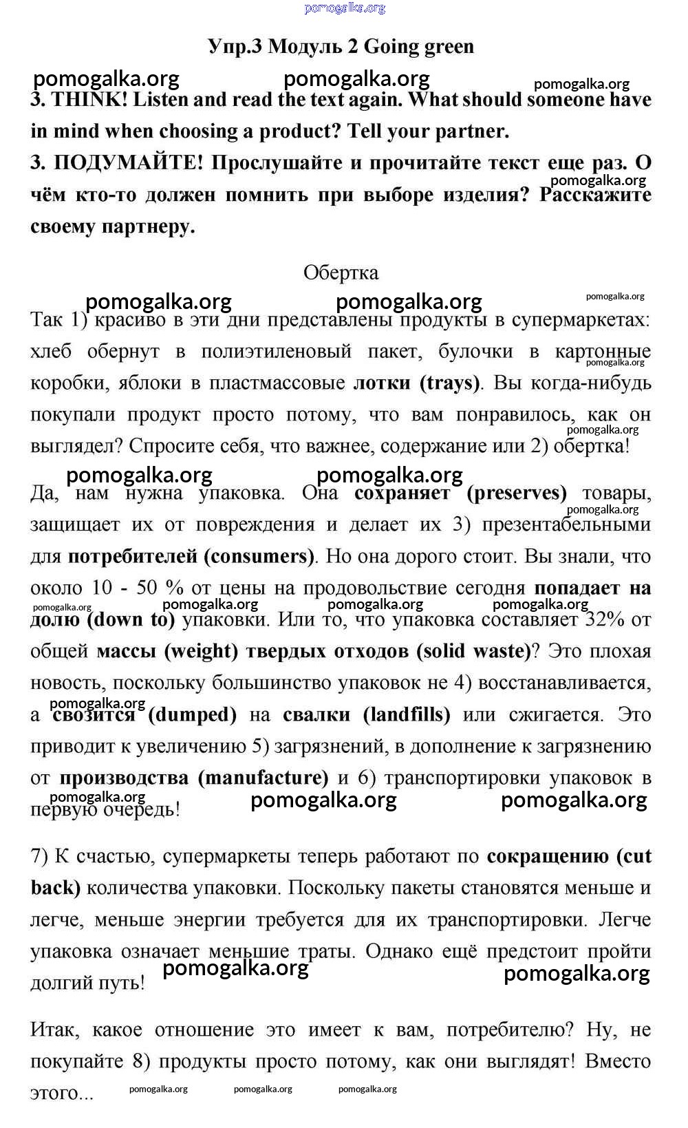Готовые ответы - Английский язык 11 класс Эванс Spotlight - going green module 2 3