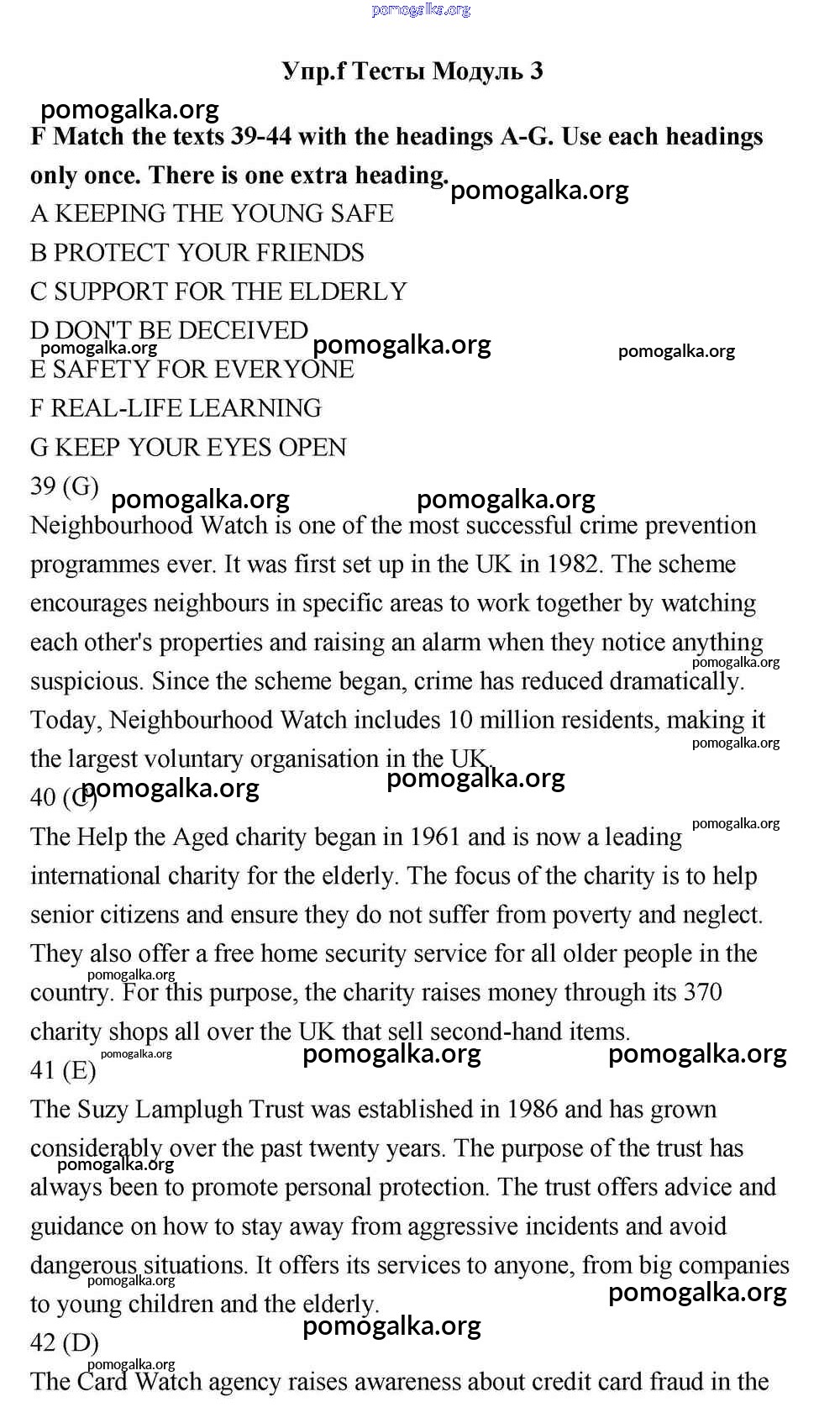 Готовые ответы - Английский язык 11 класс Эванс Spotlight - Тесты module 3 F