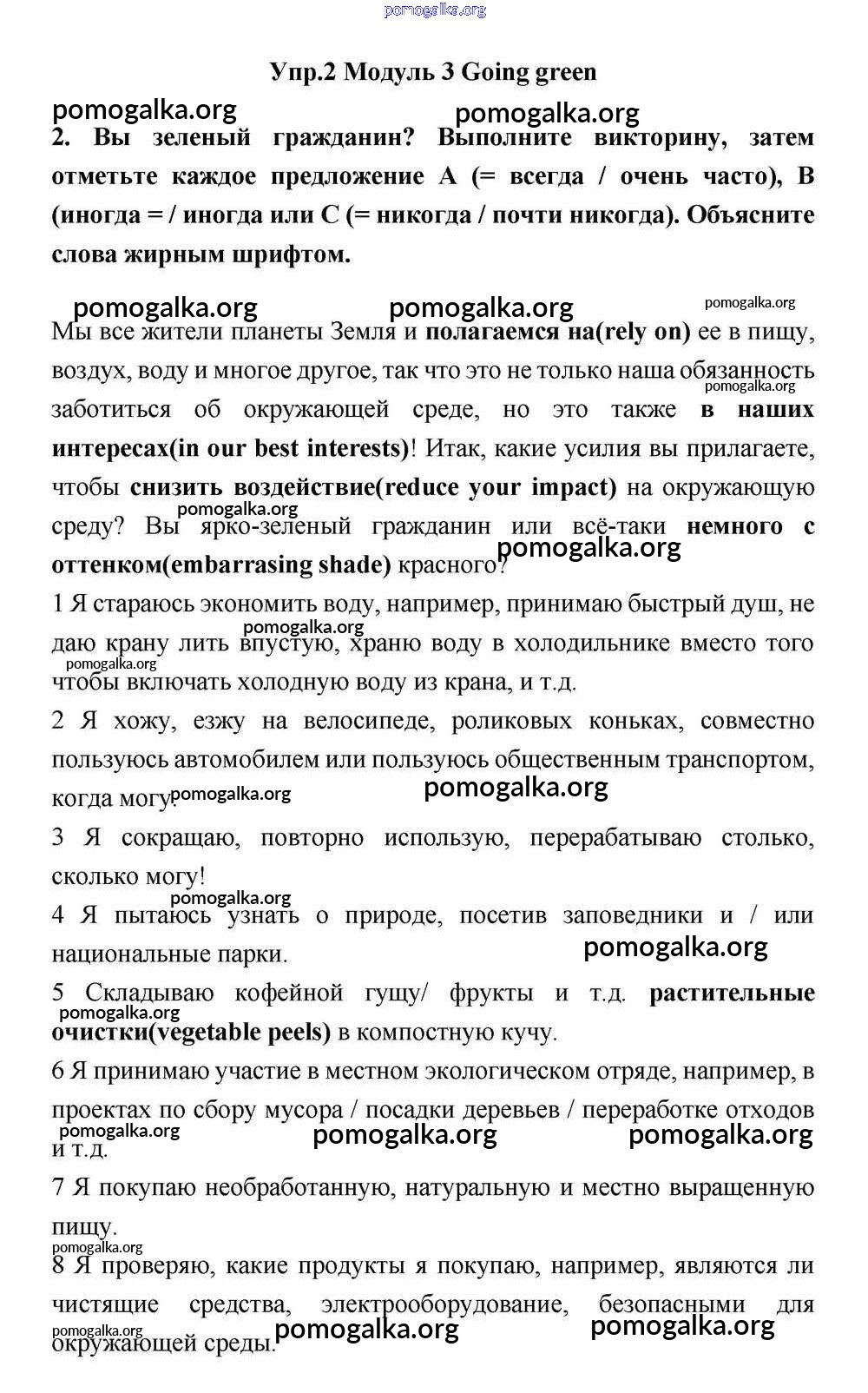 Готовые ответы - Английский язык 11 класс Эванс Spotlight - going green module 3 2