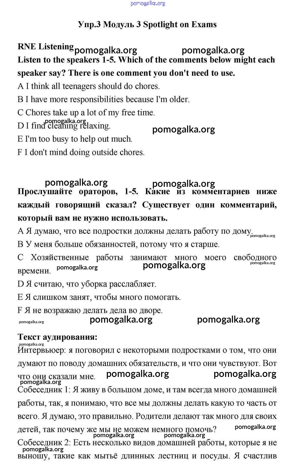 Готовые ответы - Английский язык 11 класс Эванс Spotlight - spotlight on exams module 3 3