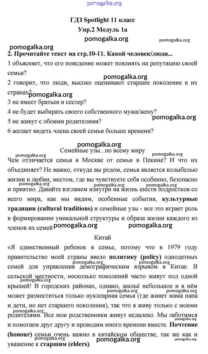 Готовые ответы - Английский язык 11 класс Эванс Spotlight - 1a module 1 2