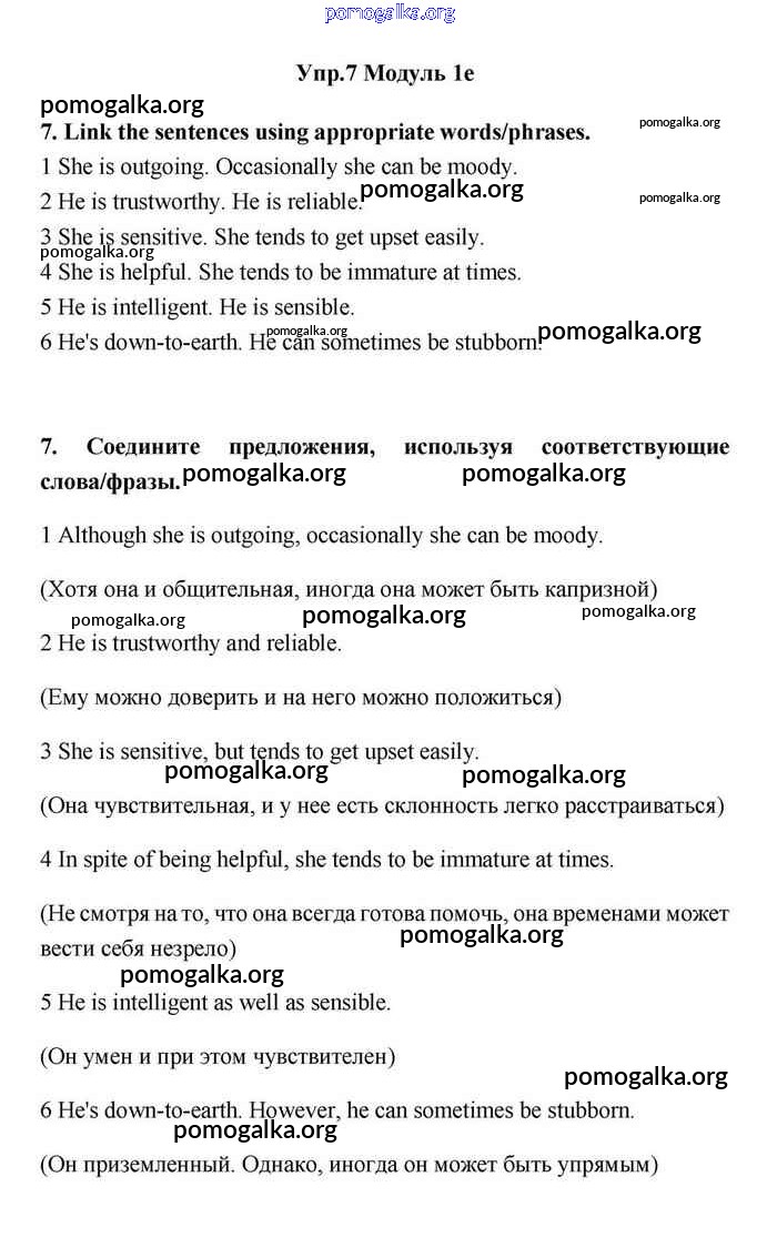 Готовые ответы - Английский язык 11 класс Эванс Spotlight - 1e module 1 7