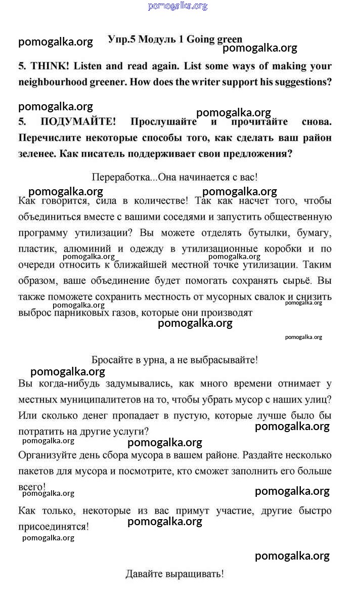 Готовые ответы - Английский язык 11 класс Эванс Spotlight - going green module 1 5