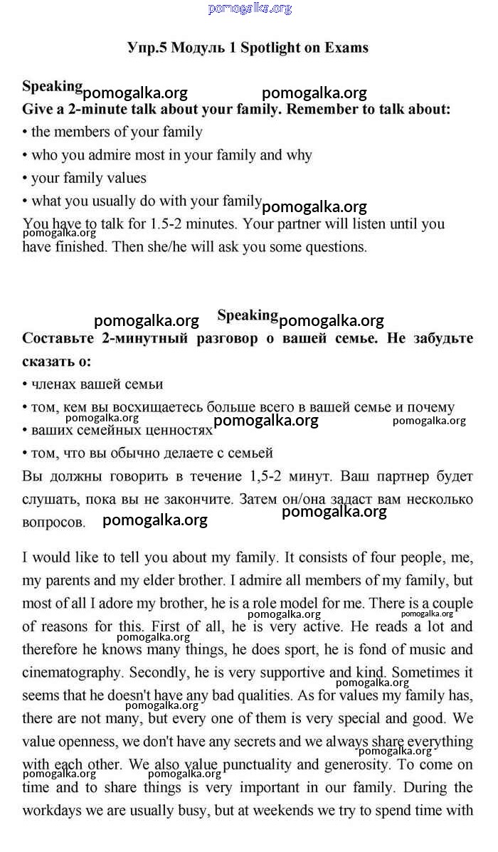 Готовые ответы - Английский язык 11 класс Эванс Spotlight - spotlight on exams module 1 Speaking