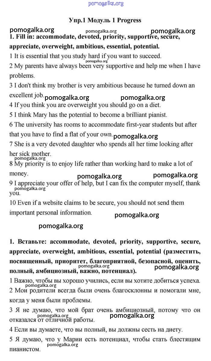 Готовые ответы - Английский язык 11 класс Эванс Spotlight - progress check 1 module 1 1