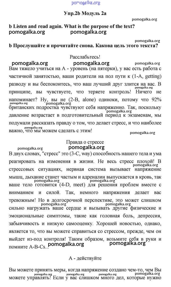Готовые ответы - Английский язык 11 класс Эванс Spotlight - 2a module 2 2