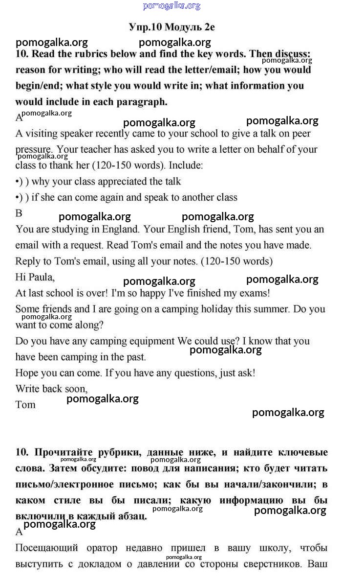 Готовые ответы - Английский язык 11 класс Эванс Spotlight - 2e module 2 10