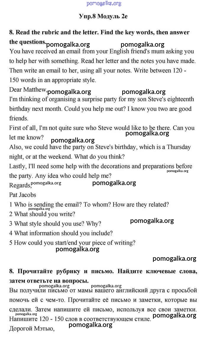 Готовые ответы - Английский язык 11 класс Эванс Spotlight - 2e module 2 8