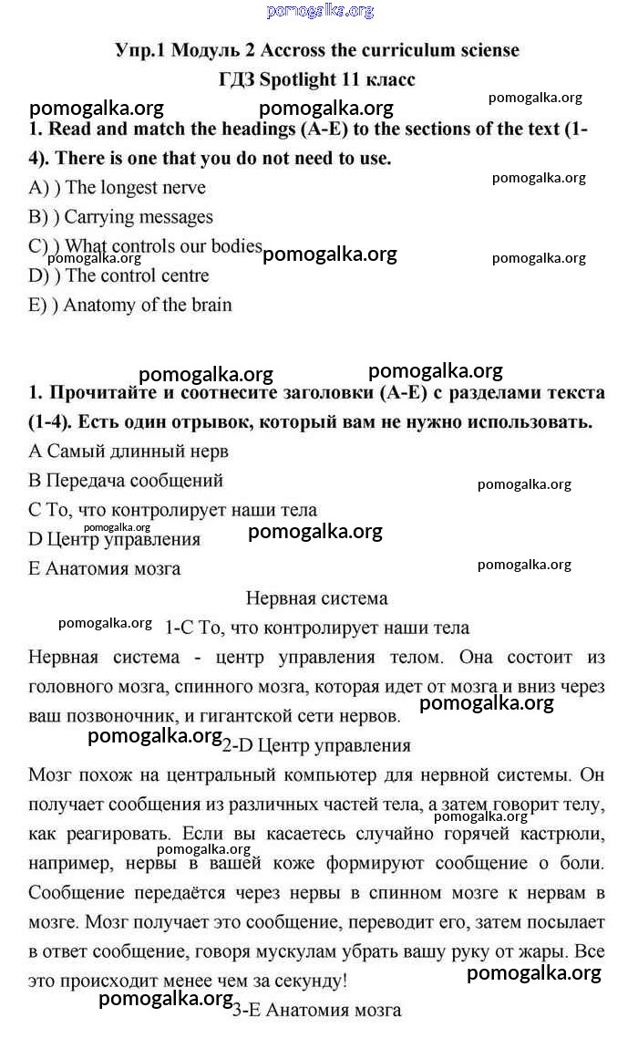 Готовые ответы - Английский язык 11 класс Эванс Spotlight - across the curriculum module 2 1