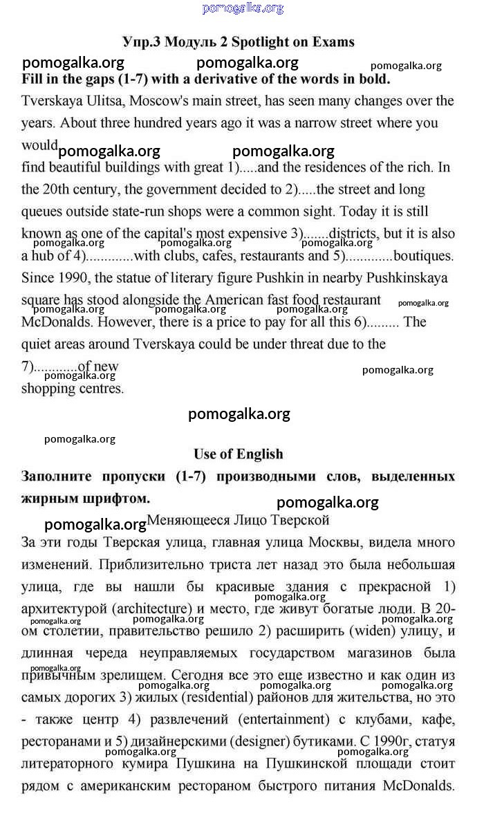Готовые ответы - Английский язык 11 класс Эванс Spotlight - spotlight on exams module 2 Use of English