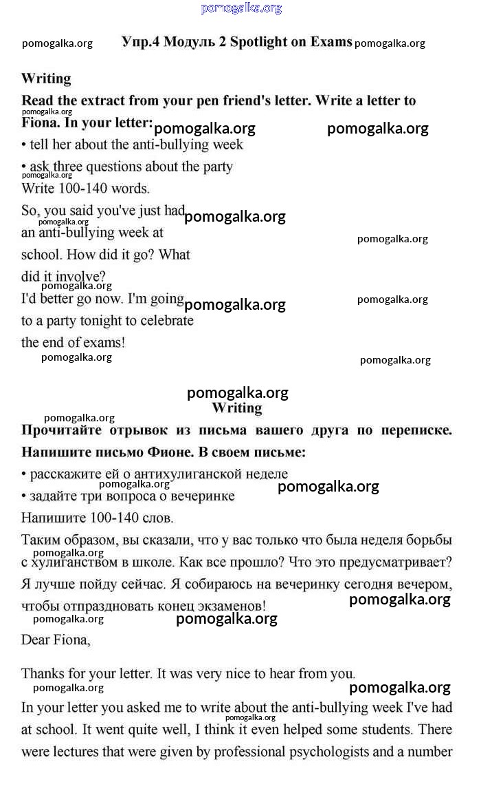 Готовые ответы - Английский язык 11 класс Эванс Spotlight - spotlight on exams module 2 Writing