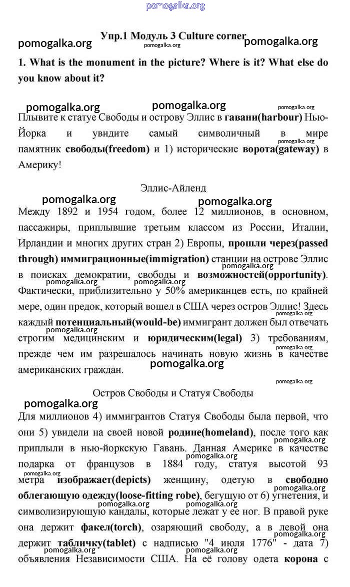 Готовые ответы - Английский язык 11 класс Эванс Spotlight - culture corner 3 module 3 1