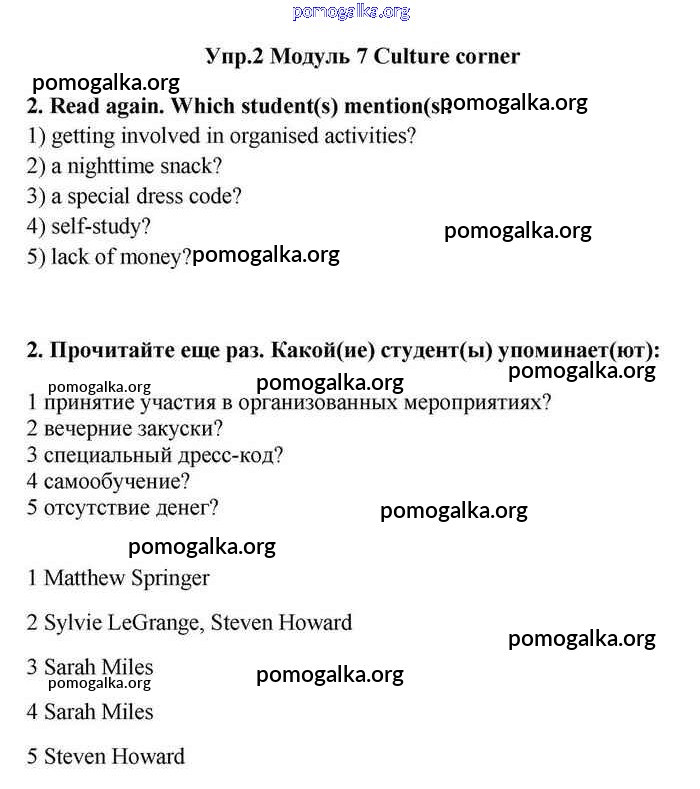 Готовые ответы - Английский язык 11 класс Эванс Spotlight - culture corner 7 module 7 2