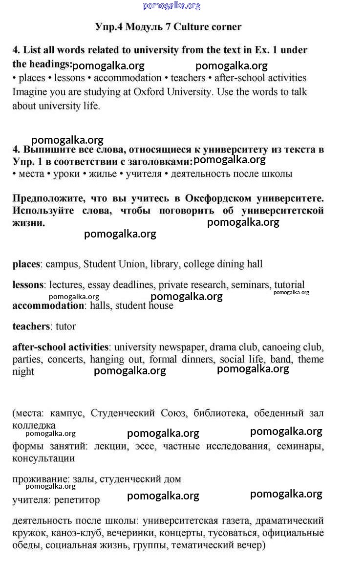 Готовые ответы - Английский язык 11 класс Эванс Spotlight - culture corner 7 module 7 4