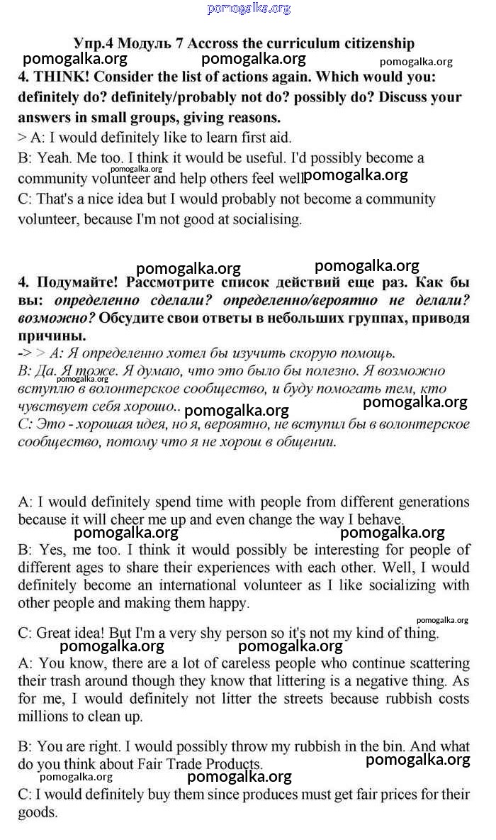 Готовые ответы - Английский язык 11 класс Эванс Spotlight - across the curriculum module 7 4