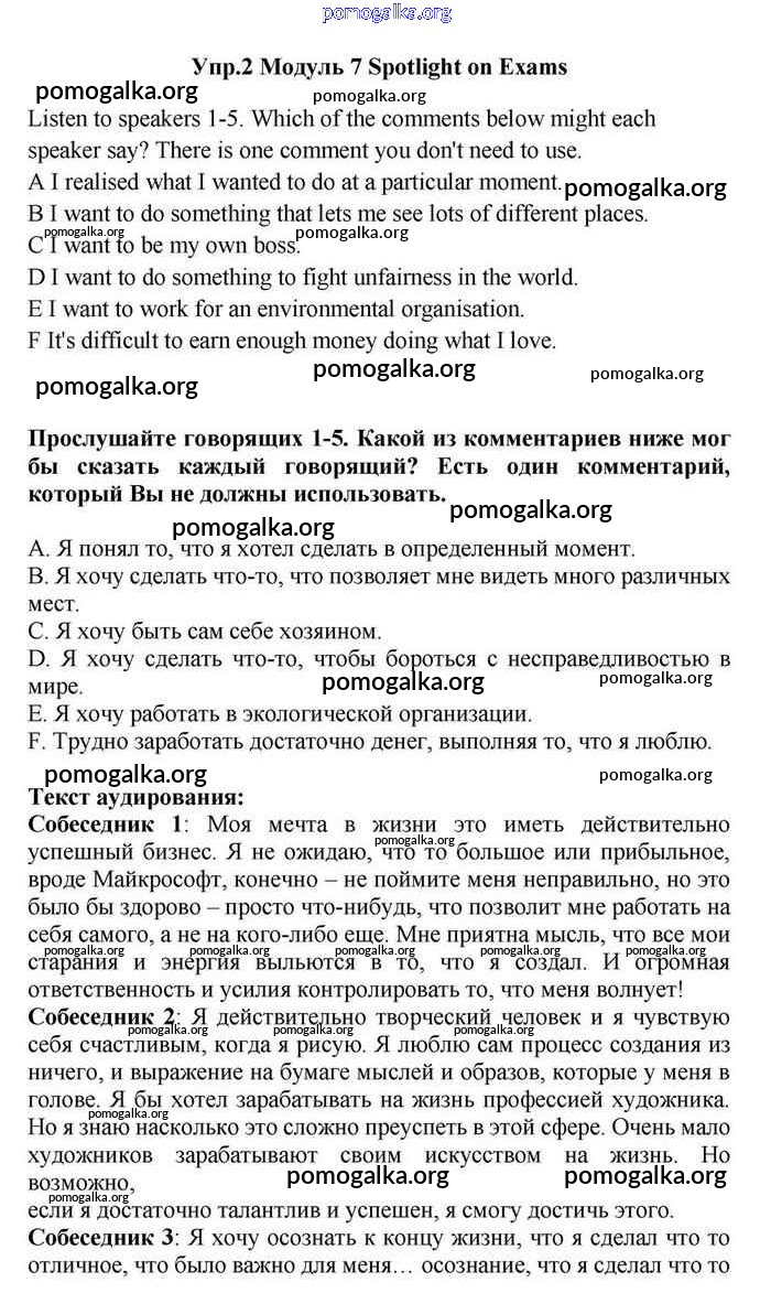 Готовые ответы - Английский язык 11 класс Эванс Spotlight - spotlight on exams module 7 Listening