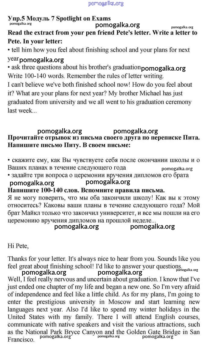 Готовые ответы - Английский язык 11 класс Эванс Spotlight - spotlight on exams module 7 Writing