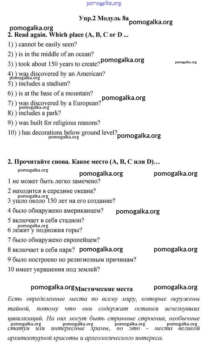 Готовые ответы - Английский язык 11 класс Эванс Spotlight - 8a module 8 2