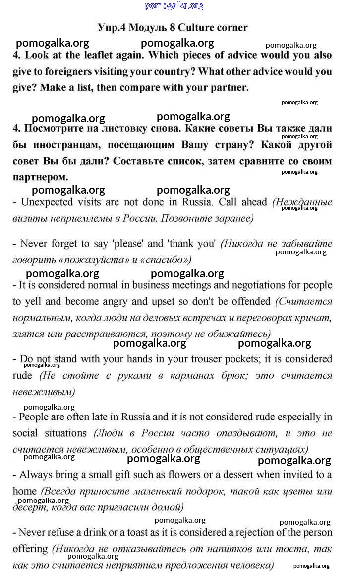 Готовые ответы - Английский язык 11 класс Эванс Spotlight - culture corner 8 module 8 4