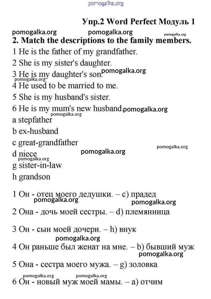 Готовые ответы - Английский язык 11 класс Эванс Spotlight - module 1 word perfect 2