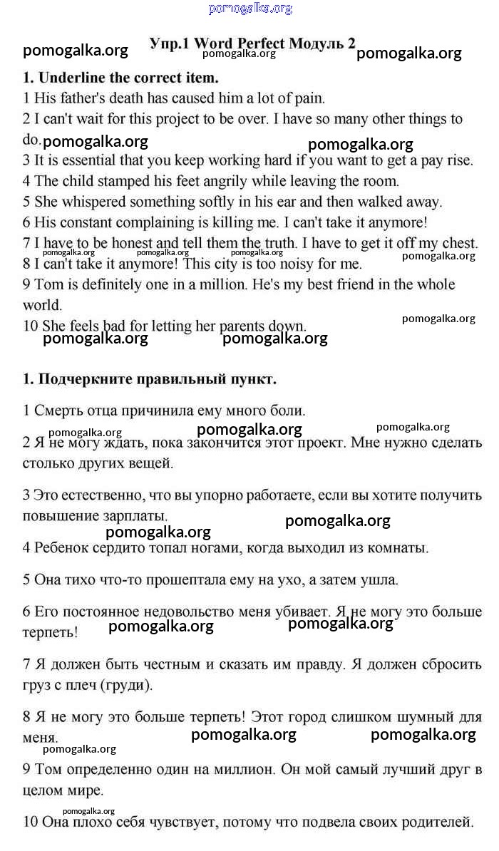 Готовые ответы - Английский язык 11 класс Эванс Spotlight - module 2 word perfect 1