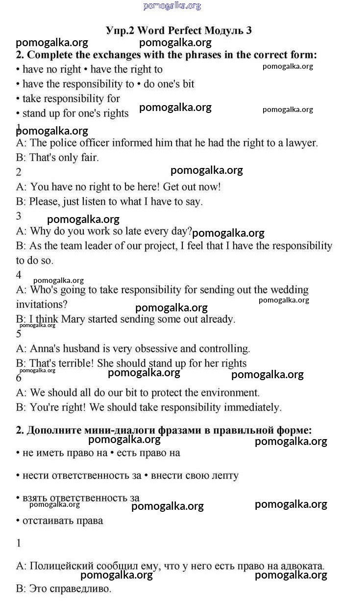 Готовые ответы - Английский язык 11 класс Эванс Spotlight - module 3 word perfect 2