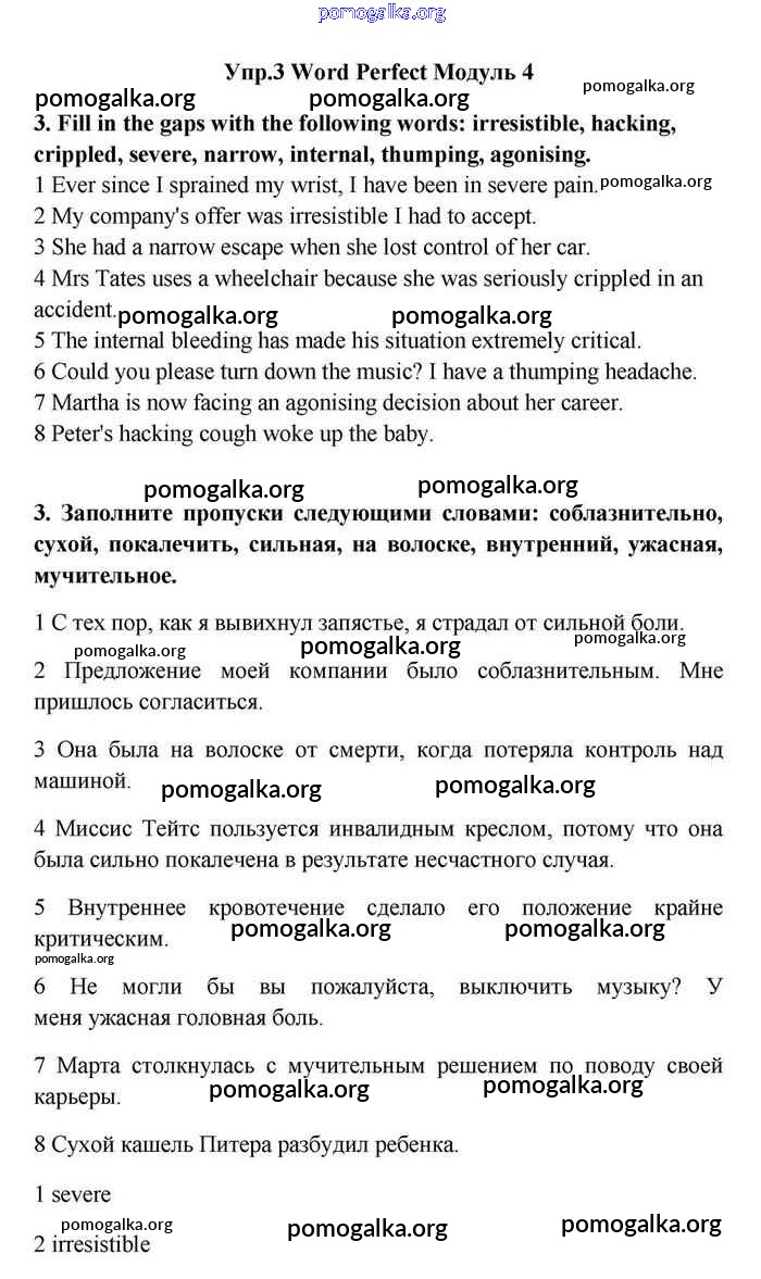 Готовые ответы - Английский язык 11 класс Эванс Spotlight - module 4 word perfect 3