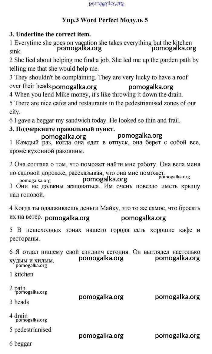 Готовые ответы - Английский язык 11 класс Эванс Spotlight - module 5 word perfect 3