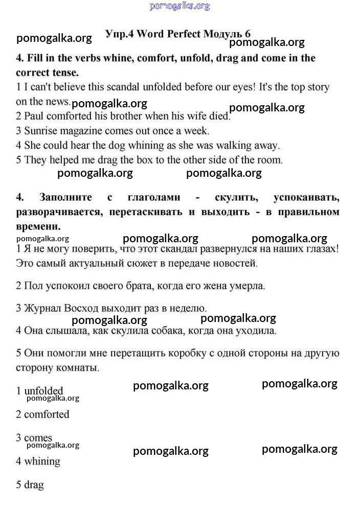 Готовые ответы - Английский язык 11 класс Эванс Spotlight - module 6 word perfect 4