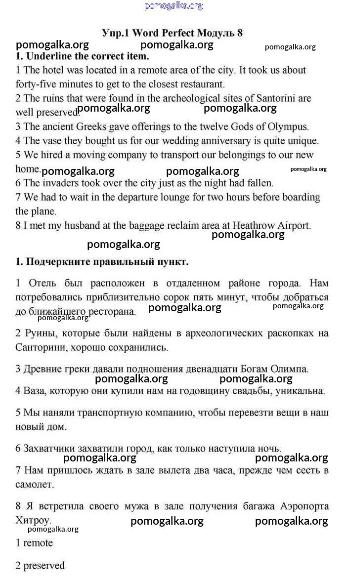 Готовые ответы - Английский язык 11 класс Эванс Spotlight - module 8 word perfect 1