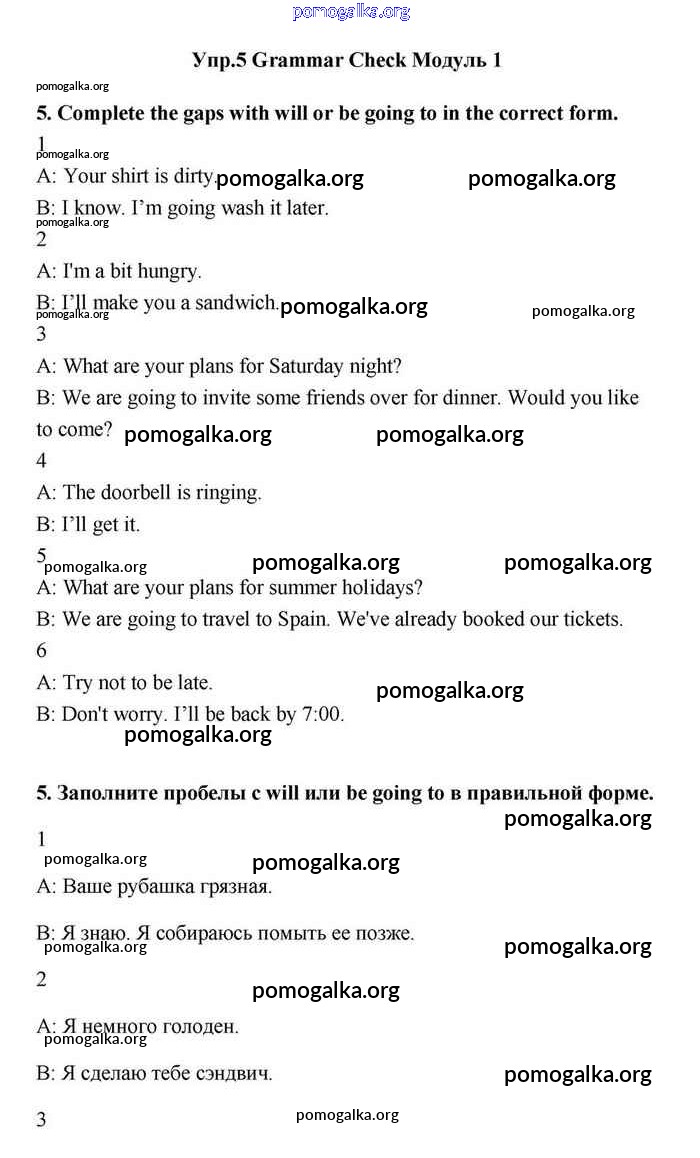 Готовые ответы - Английский язык 11 класс Эванс Spotlight - module 1 grammar check 5