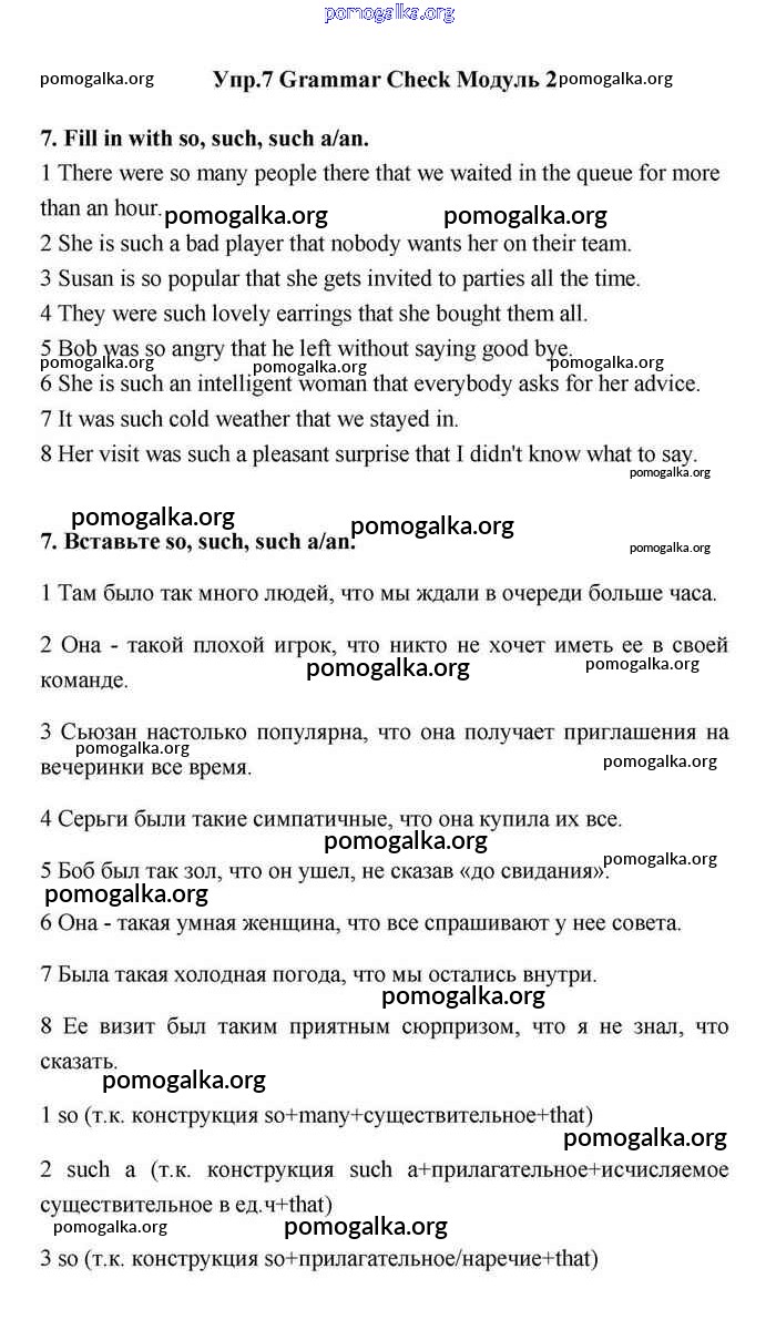 Готовые ответы - Английский язык 11 класс Эванс Spotlight - module 2 grammar check 7