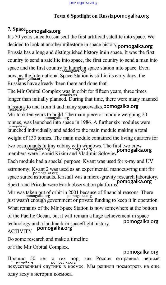 Готовые ответы - Английский язык 11 класс Эванс Spotlight - spotlight on Russia стр. 8