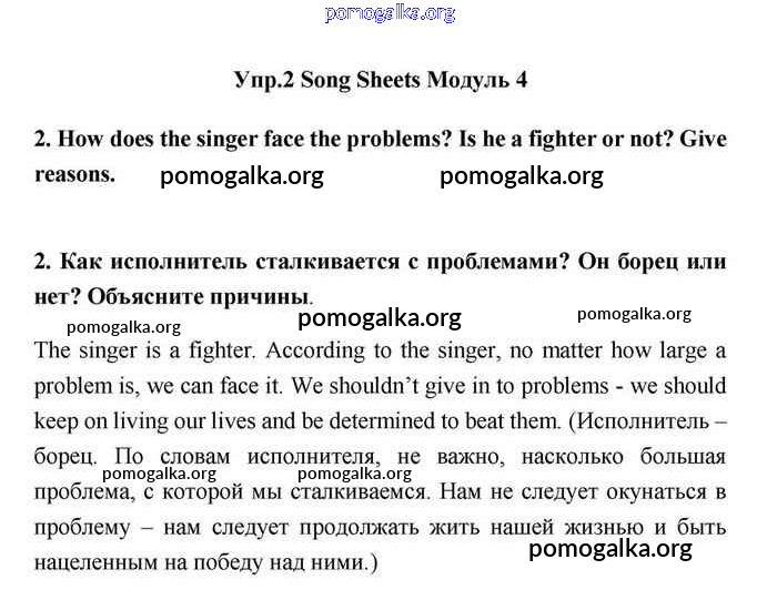 Готовые ответы - Английский язык 11 класс Эванс Spotlight - module 4 song sheets 2