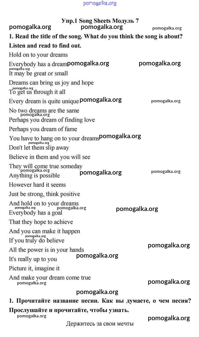 Готовые ответы - Английский язык 11 класс Эванс Spotlight - module 7 song sheets 1