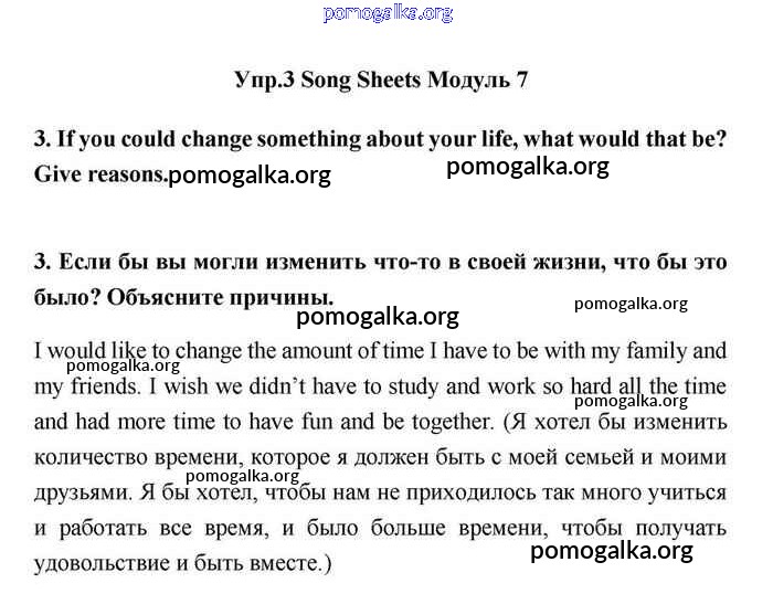 Готовые ответы - Английский язык 11 класс Эванс Spotlight - module 7 song sheets 3
