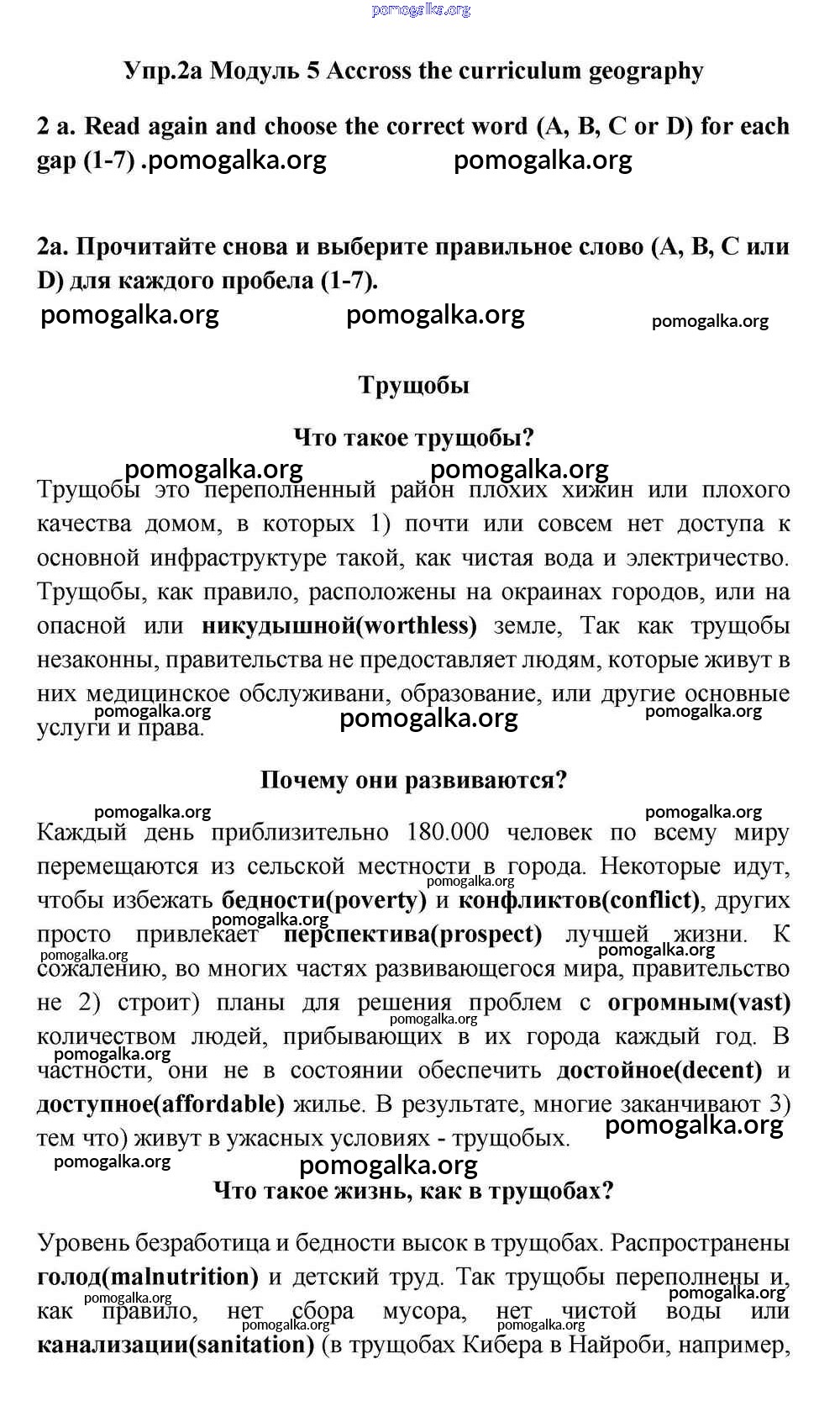 Готовые ответы - Английский язык 11 класс Эванс Spotlight - accross the curriculum geography module 5 2a