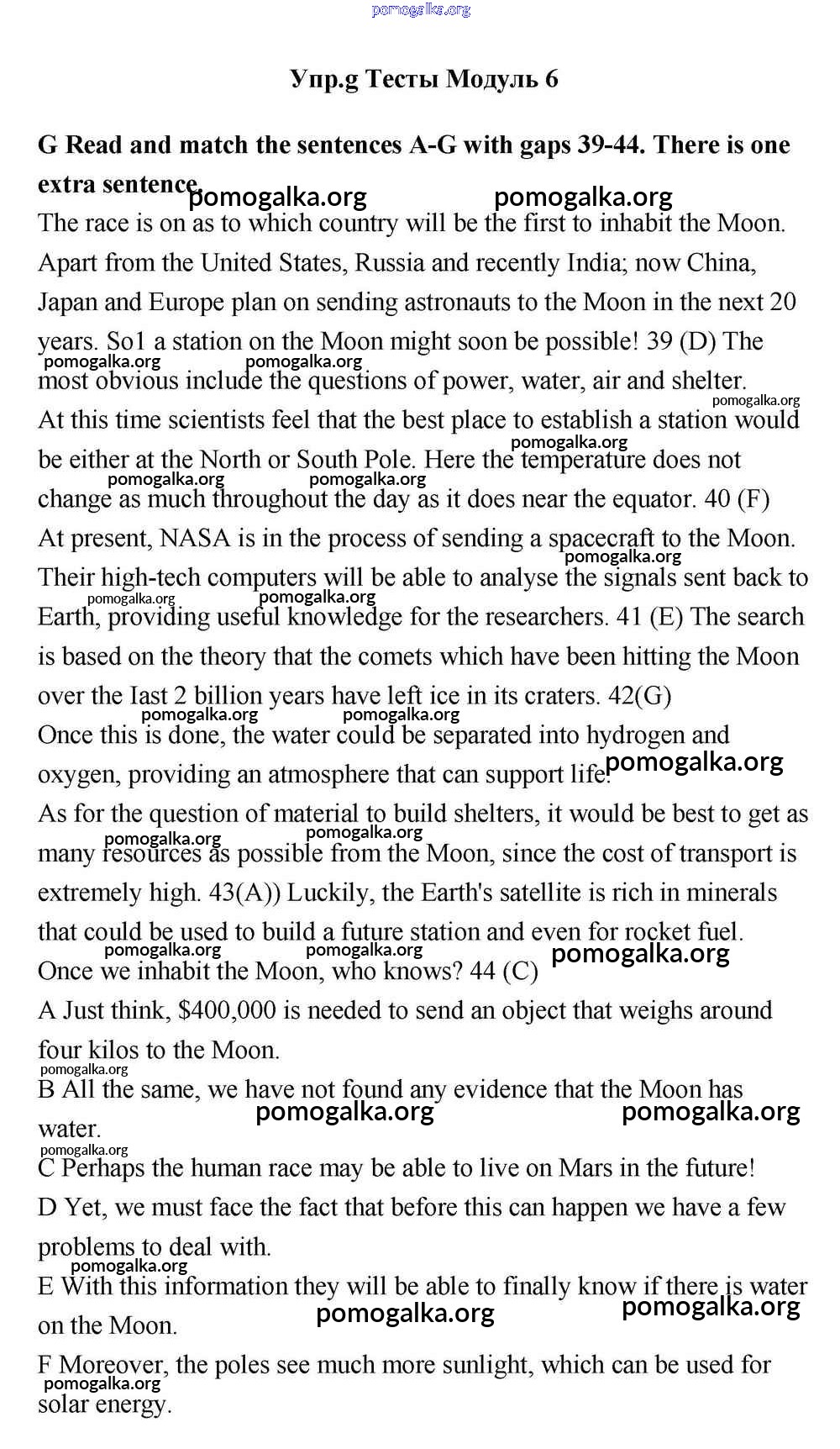 Готовые ответы - Английский язык 11 класс Эванс Spotlight - тесты module 6 G