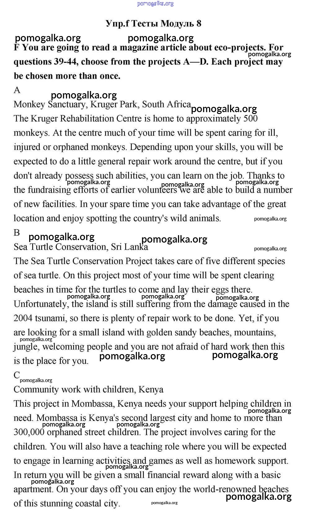 Готовые ответы - Английский язык 11 класс Эванс Spotlight - тесты module 8 F