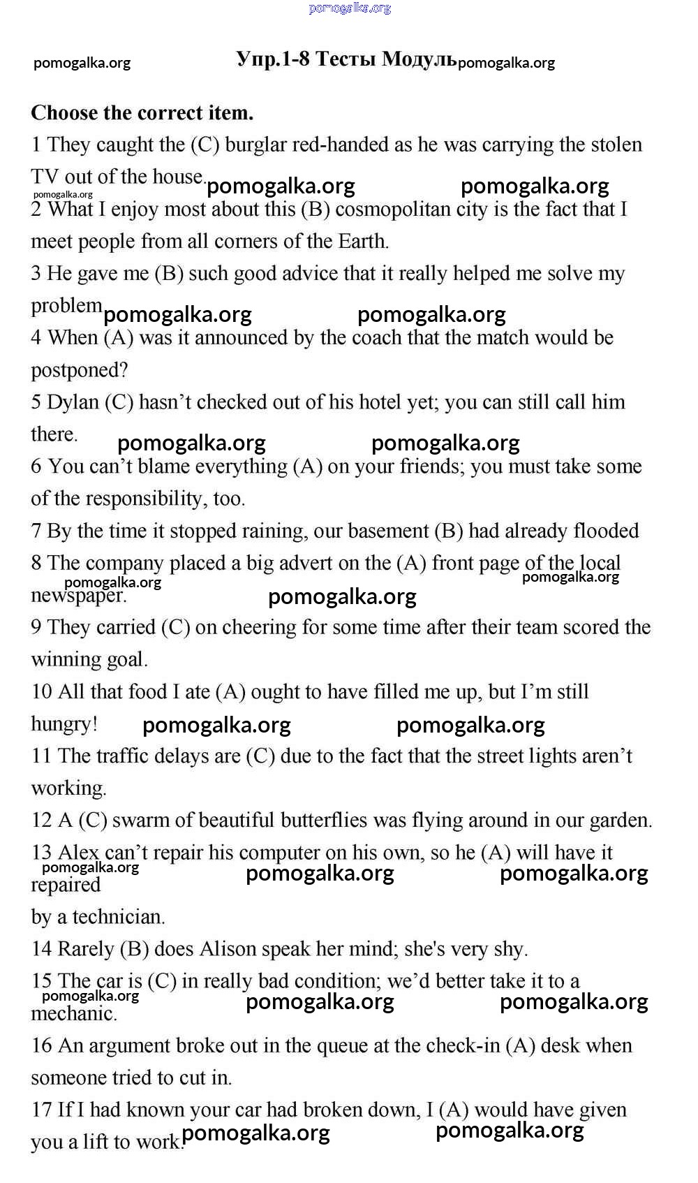 Готовые ответы - Английский язык 11 класс Эванс Spotlight - тесты module 8 Заключительный тест (1-8)