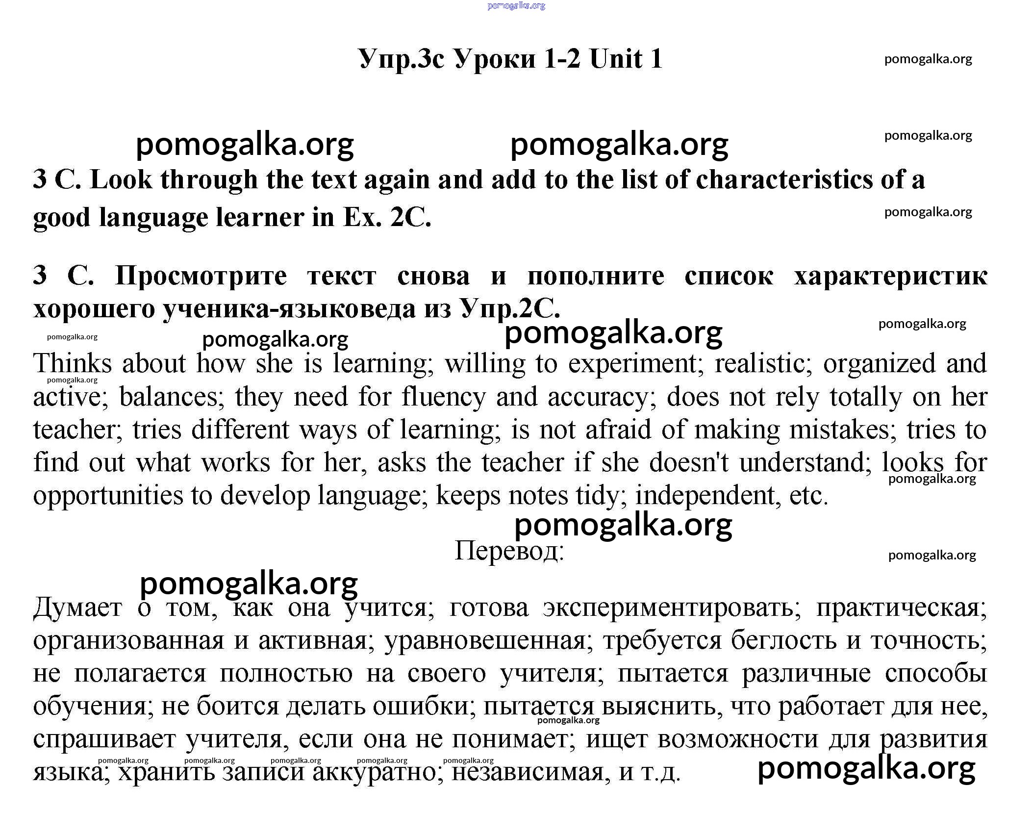 Готовые ответы - Английский язык 11 класс Гроза New Millennium - lesson 1-2 unit 1 3c