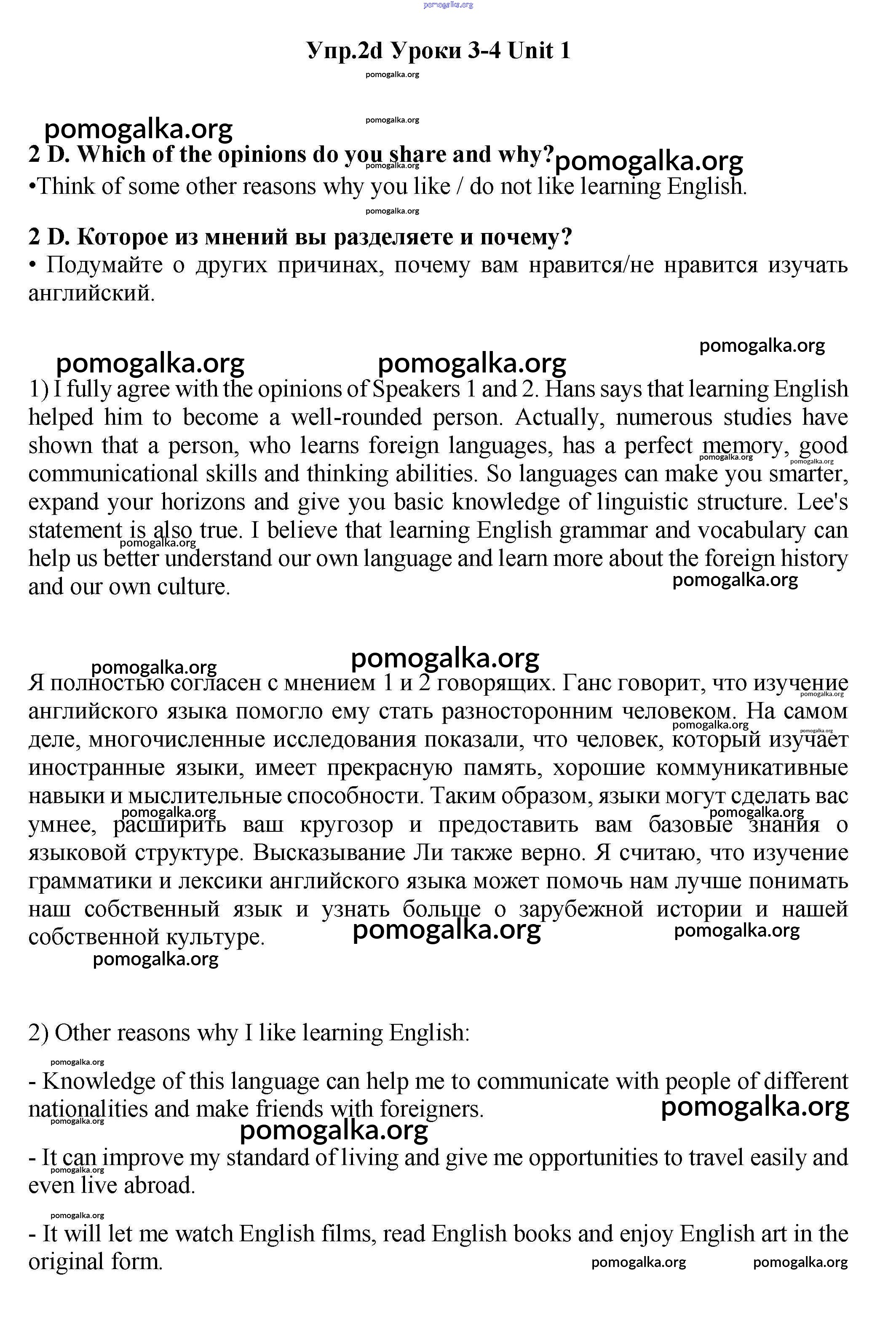 Готовые ответы - Английский язык 11 класс Гроза New Millennium - lesson 3-4 unit 1 2d