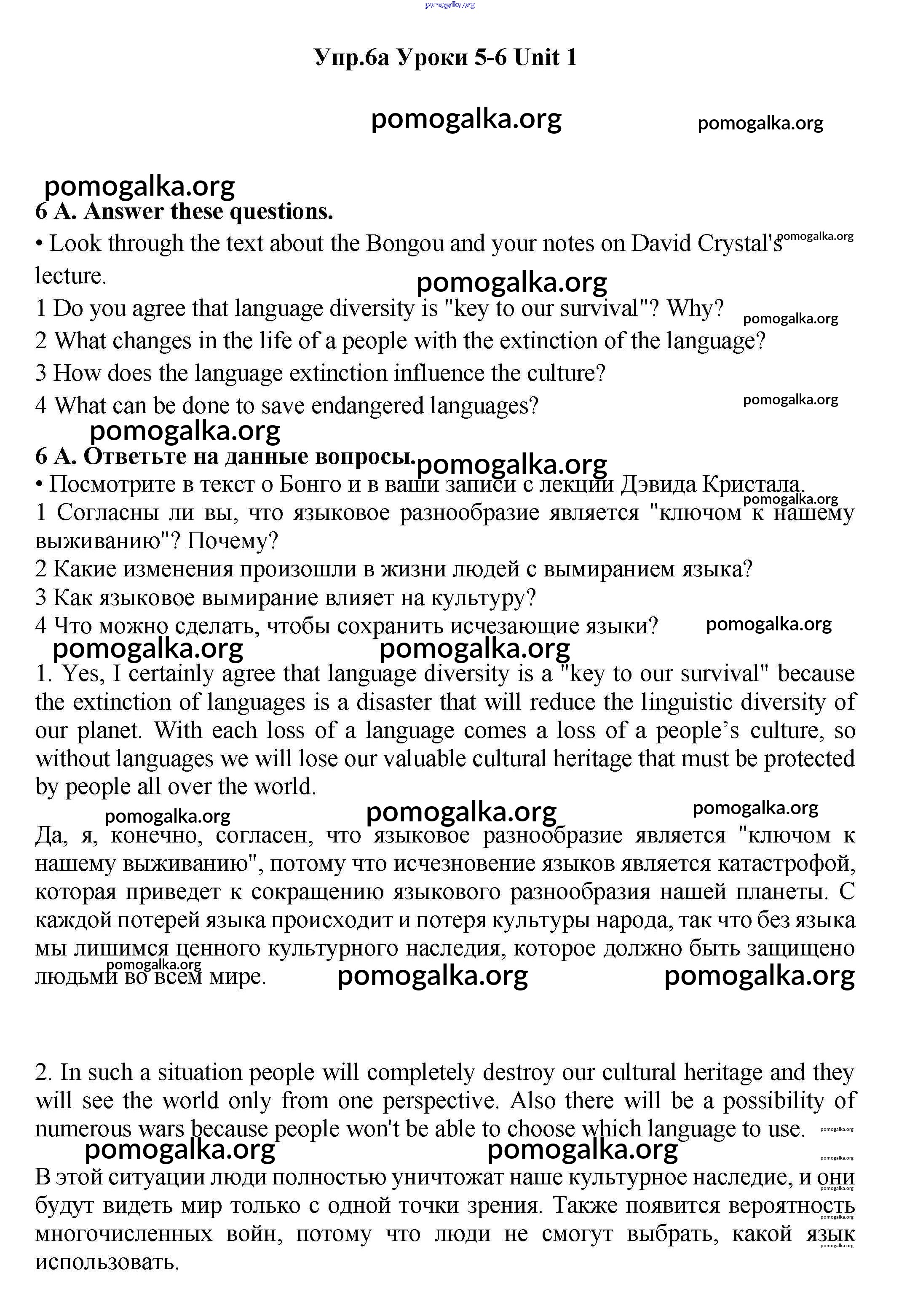 Готовые ответы - Английский язык 11 класс Гроза New Millennium - lesson 5-6 unit 1 6a