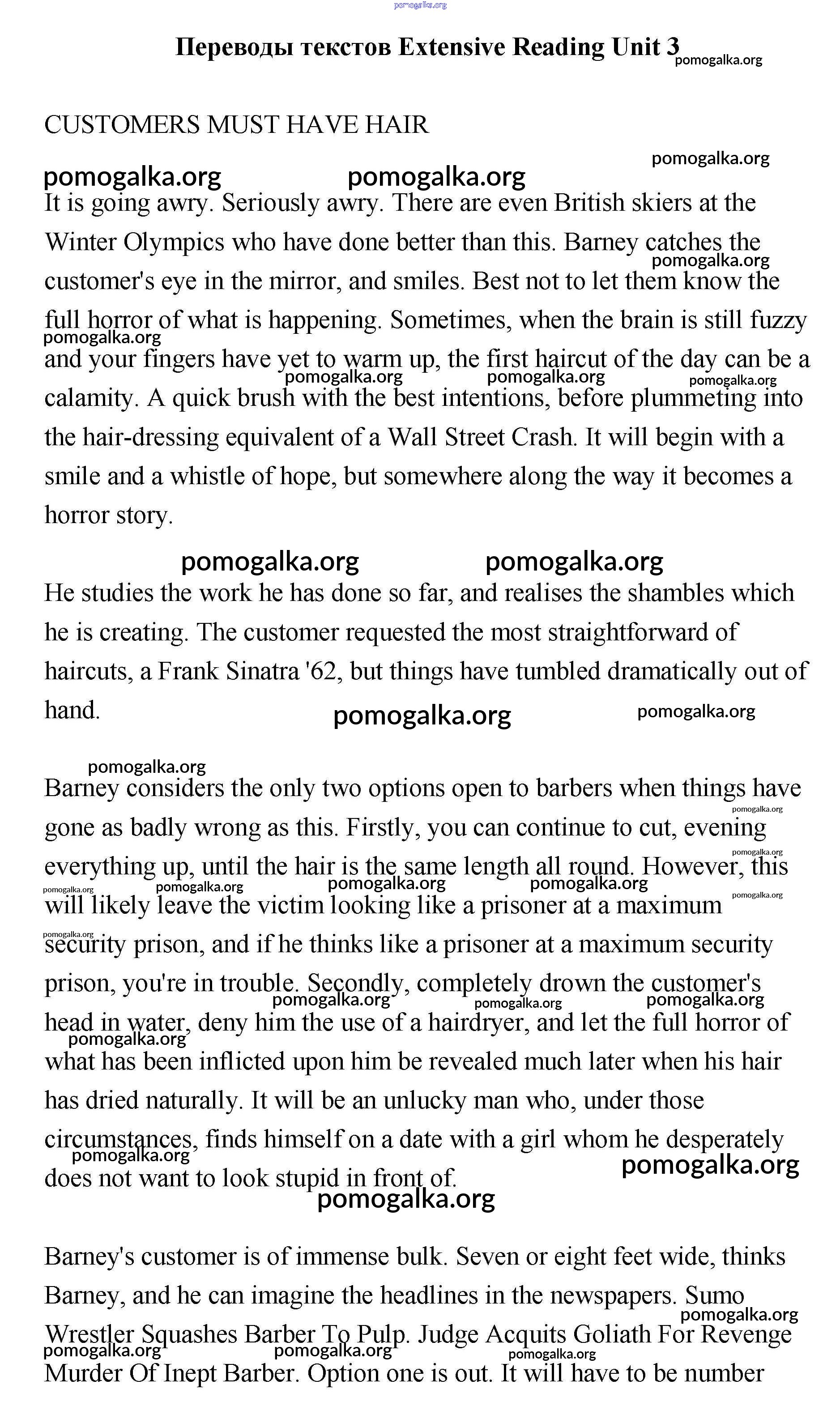 Готовые ответы - Английский язык 11 класс Гроза New Millennium - a job for life extensive reading Переводы текстов