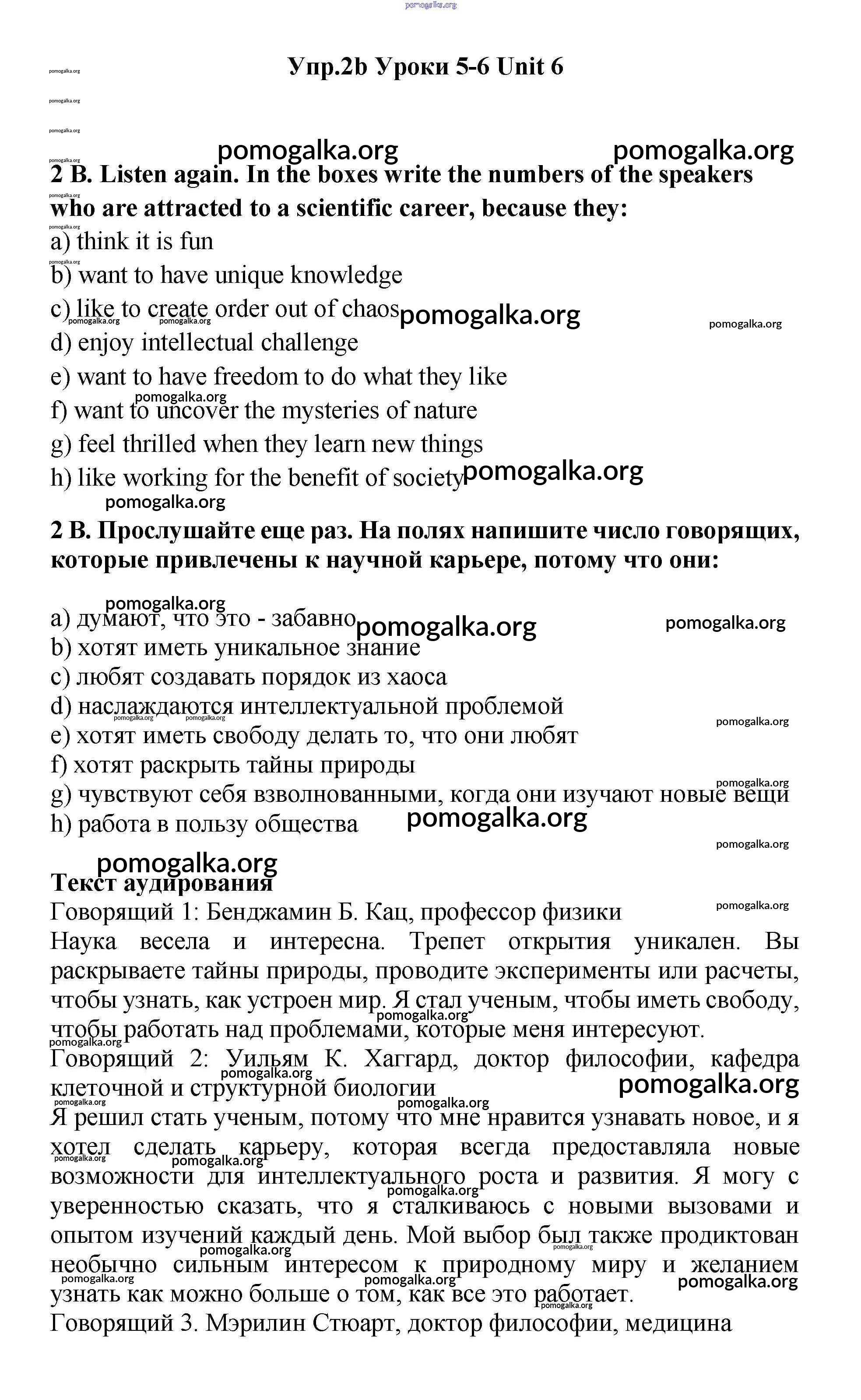Готовые ответы - Английский язык 11 класс Гроза New Millennium - lesson 5-6 unit 6 2b