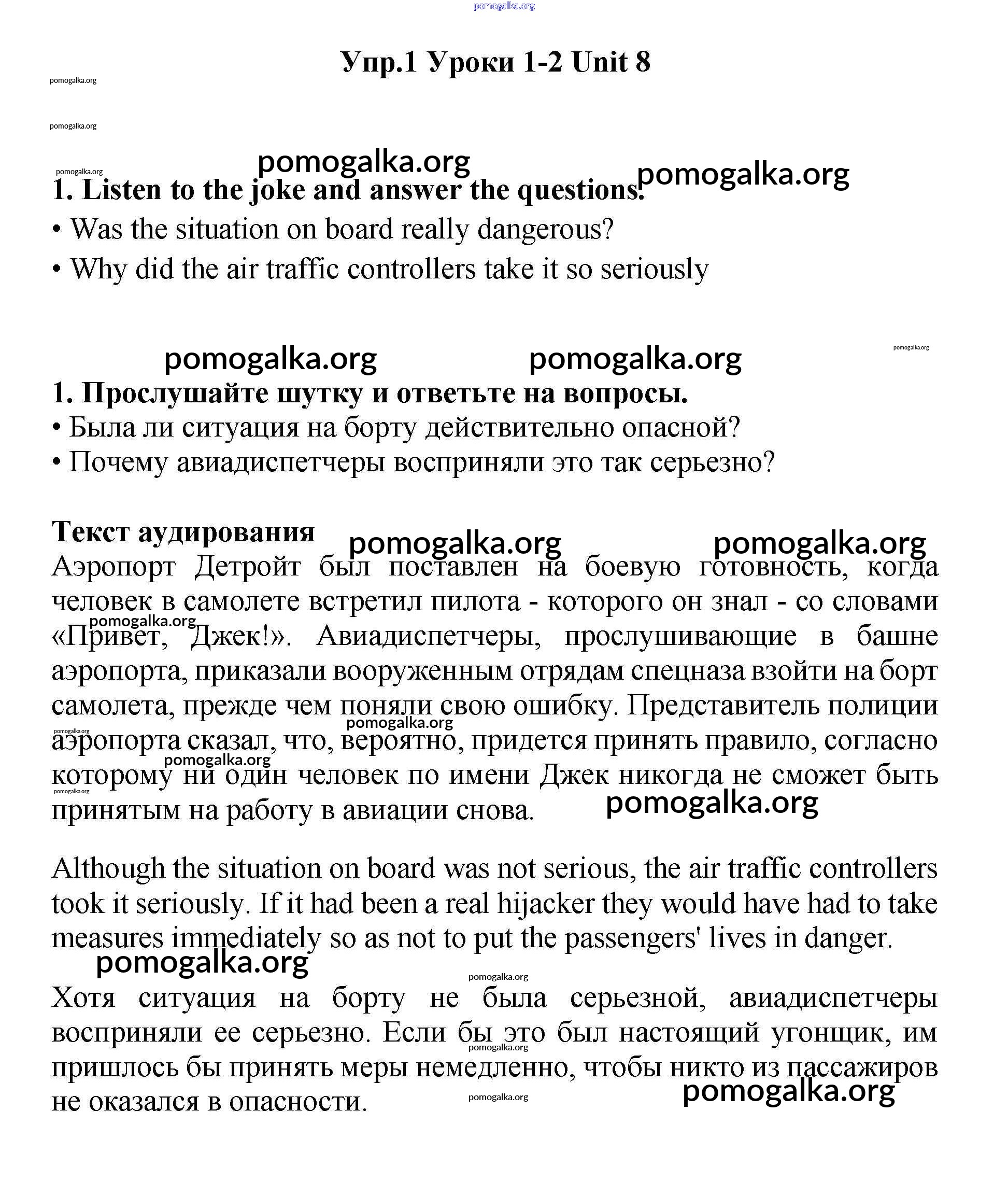 Готовые ответы - Английский язык 11 класс Гроза New Millennium - lesson 1-2 unit 8 1